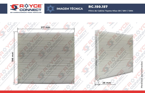 Filtro de Cabine Toyota Hilux Motor 2.7 SR/ SRV/ SW4/ Yaris 2018>/ Corolla 2008 Até 2019/ Fielder 2008>/ Rav4 2006 Até 2018/ Camry 2007> OEM: 87139YZZ08/ 87139YZZ74