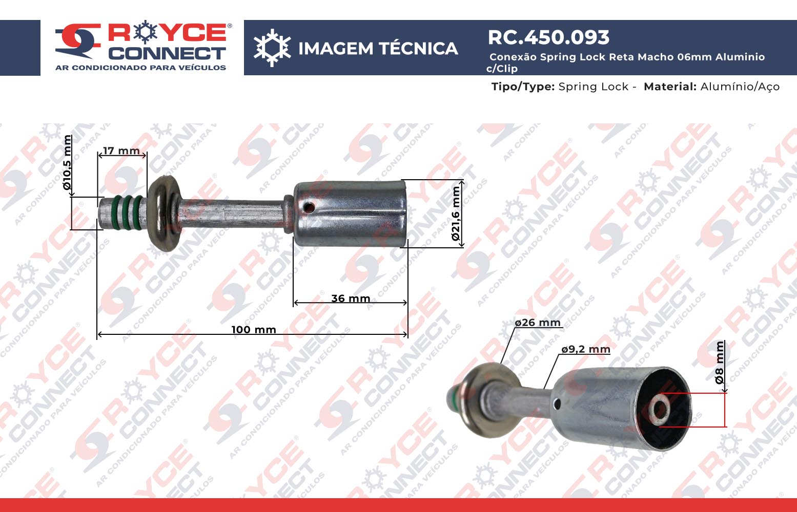 Conexão Spring Lock Reta Macho 06mm Aluminio c/Clip