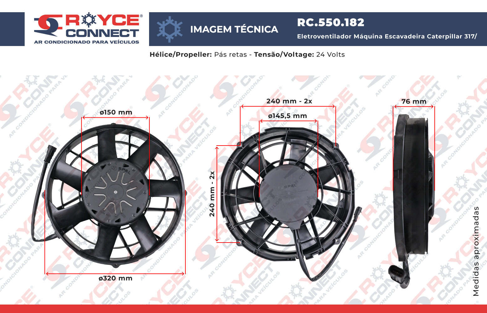 Eletroventilador Universal Spal Aspirante Eletrônico 12 Polegadas - Chicote 3 Fios - 24 Volts Spal-VA89-BBL378B/R/A-94A