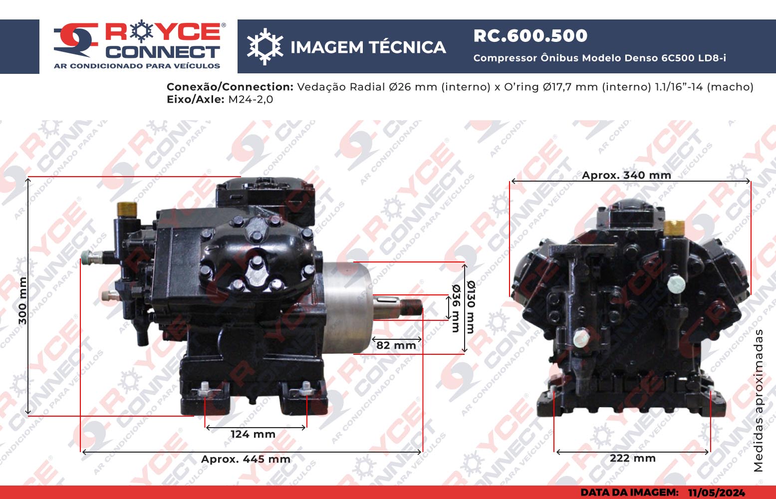 Compressor Ônibus Modelo Denso 6C500 LD8-i