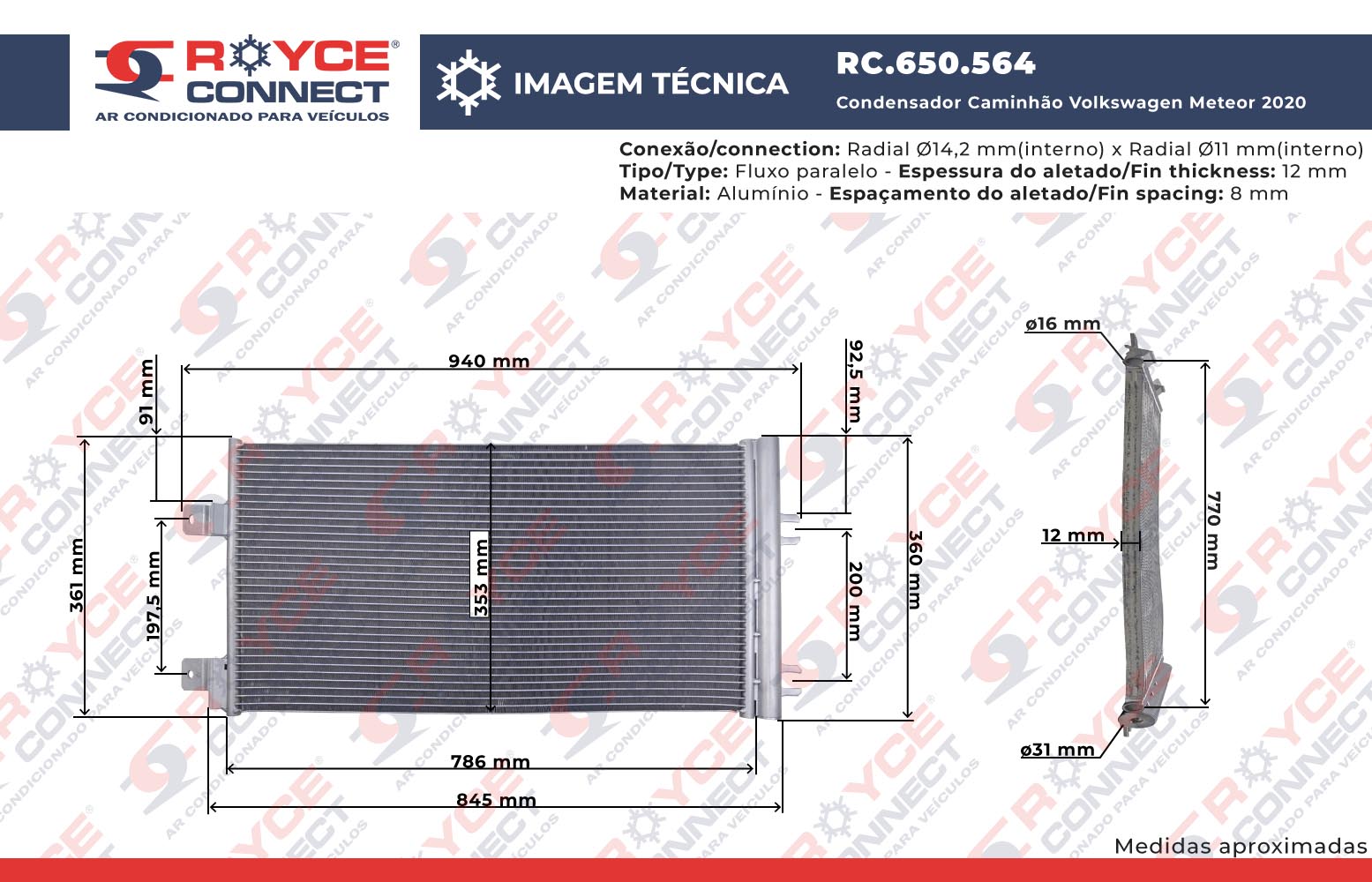 Condensador Caminhão Volkswagen Meteor 2020> Fluxo Paralelo OEM: 2V3820413